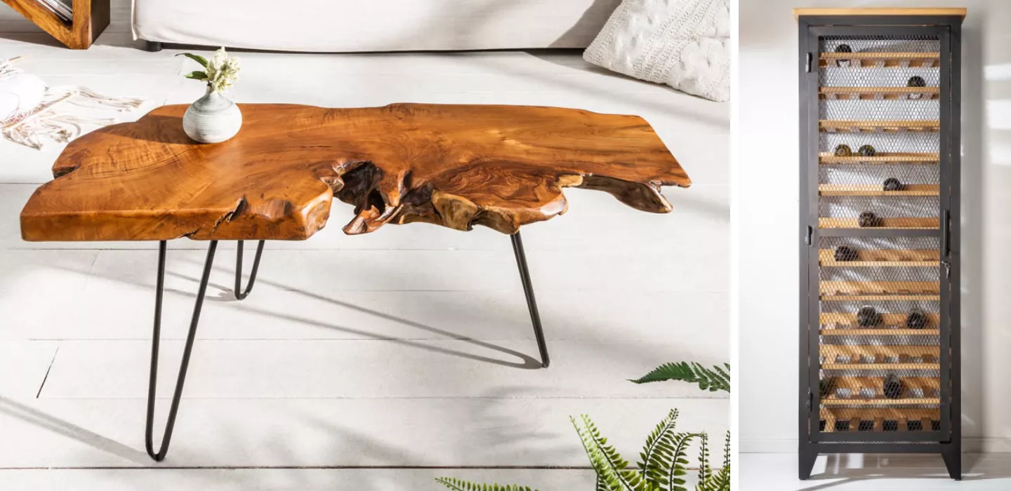 Nábytek a bytové doplňky z masivního dřeva. Můžete vybírat z několika typů dřeva, například z indického palisandru, akácie, teaku, dubu a dalších. Masivní nábytek vydrží mnoho let a doplňuje interiér o přírodní atmosféru.