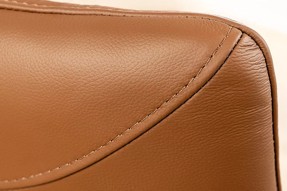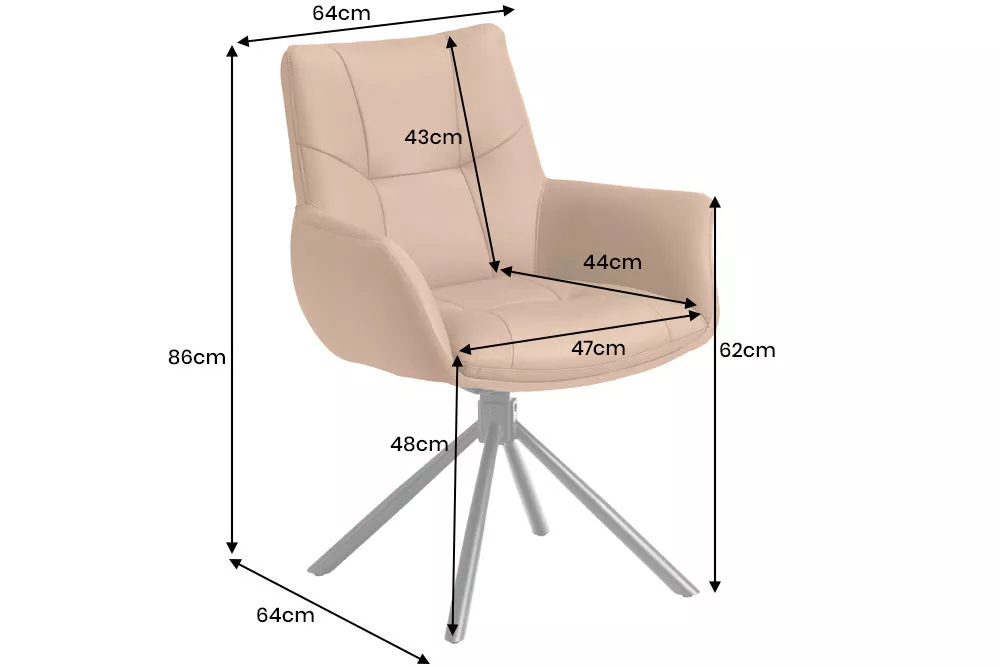 Otočná designová jídelní židle SIGNATURE s koňakovým potahem z pravé kůže a pevným kovovým rámem kombinuje nadčasovou eleganci s funkčností – 360° otočný mechanismus a integrované polstrování zajišťují pohodlí a maximální flexibilitu, ideální jako stylový doplněk ke stolu i do moderní domácí kanceláře.