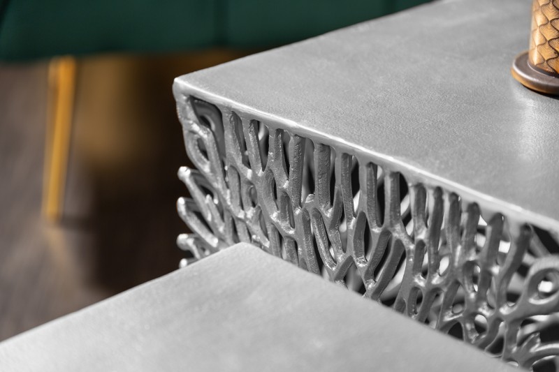 2SET odkládací stolek LEAF ve stříbrné barvě představuje elegantní a stylový prvek, který zaujme na první pohled. Stolky působí jako umělecký kousek inspirovaný přírodou. Jejich struktura, tvořená jemnými lístky a rostlinnými motivy, vytváří jedinečný vizuální efekt, který kombinuje lehkost a eleganci. Díky průhledům v designu stolek působí vzdušně a prostorově nenápadně, což z něj činí ideální doplněk do moderních, boho i klasických interiérů. Tento konferenční stolek přinese do Vašeho domova svým netypickým tvarem sofistikovaný dotek přírody a stane se stylovým středobodem každého obývacího pokoje, pracovny nebo předsíně.
