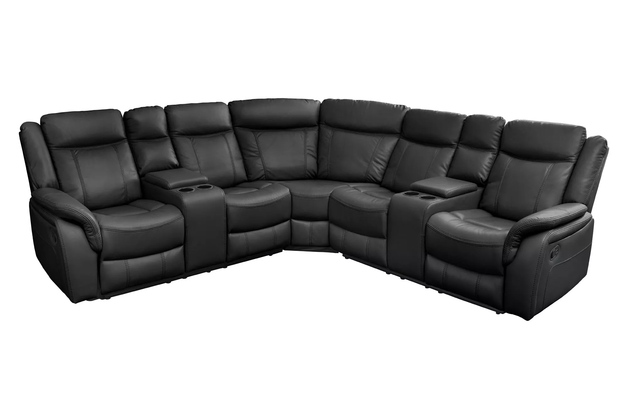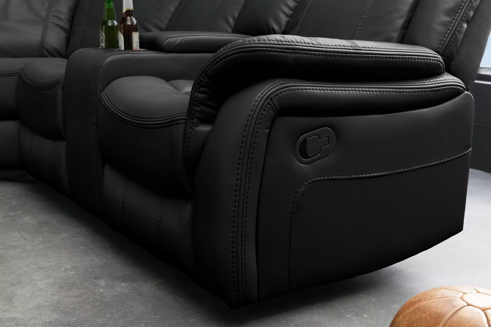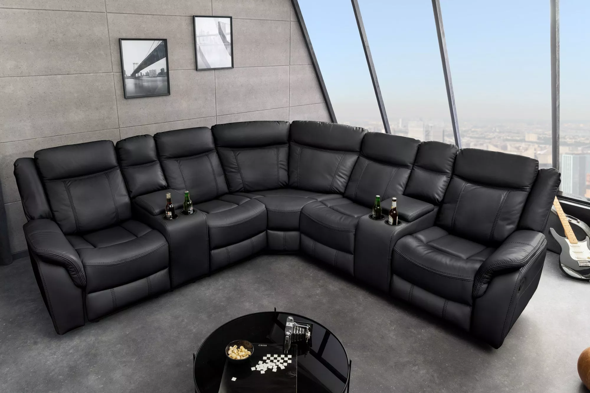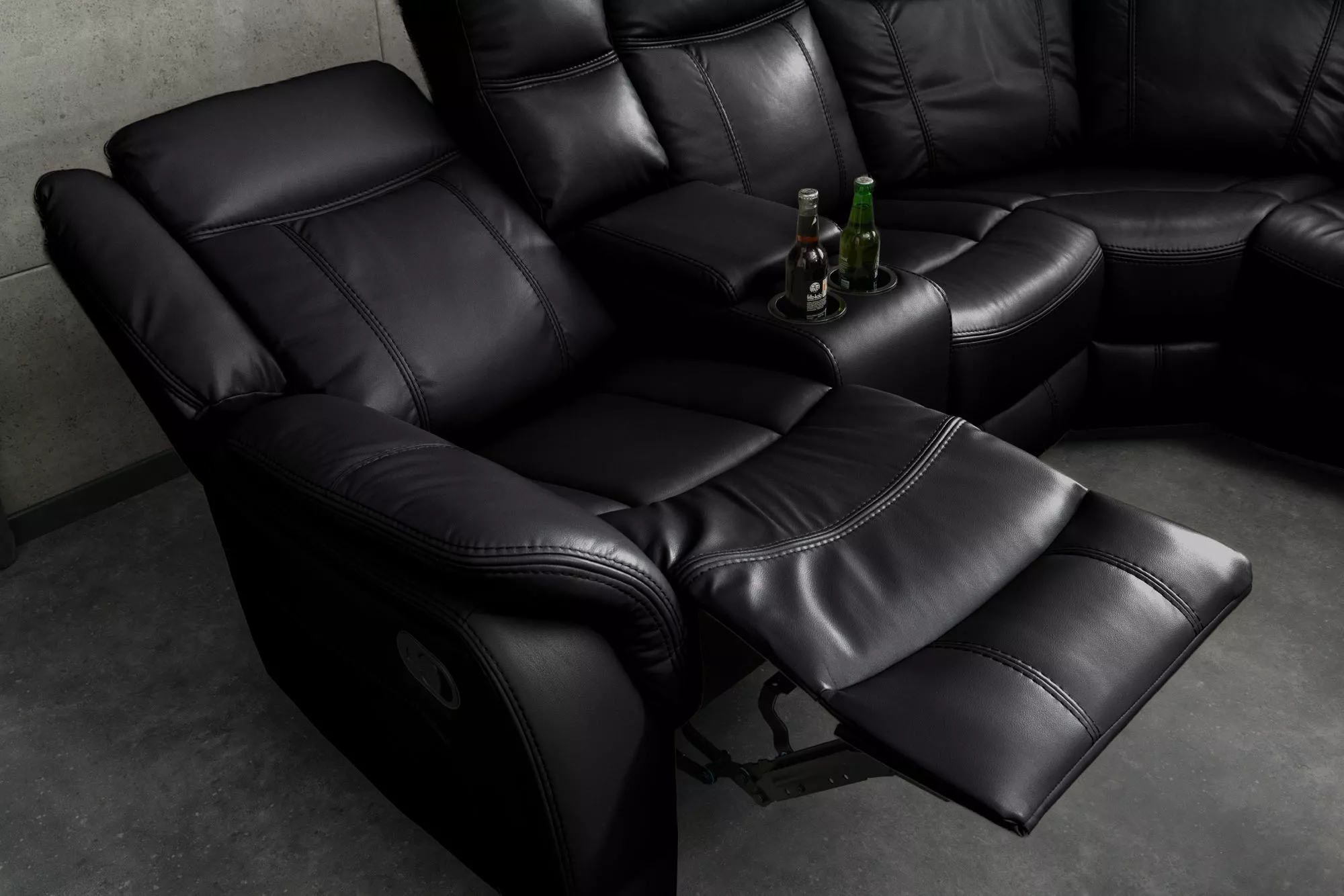 Exkluzivní 5místná kinosedačka HOLLYWOOD promění každý obývací pokoj v pohodlné domácí kino. Elegantní černý potah z umělé kůže působí luxusně a zároveň se snadno udržuje, takže je ideální pro každodenní používání. Komfortní polstrování zajišťuje příjemné sezení i při dlouhých filmových večerech, zatímco moderní design dodá interiéru výrazný a reprezentativní vzhled. Krajní sedadla jsou vybavena relax funkcí s možností sklopení opěradla a výsuvnou opěrkou nohou, díky čemuž si dopřejete maximální pohodlí. Praktické držáky na nápoje a integrované úložné prostory umožňují mít vše potřebné vždy po ruce. Tato kinosedačka je ideální volbou pro milovníky filmů, seriálů i sportovních přenosů, kteří chtějí spojit vysoký komfort, funkčnost a moderní styl v jednom nábytku.