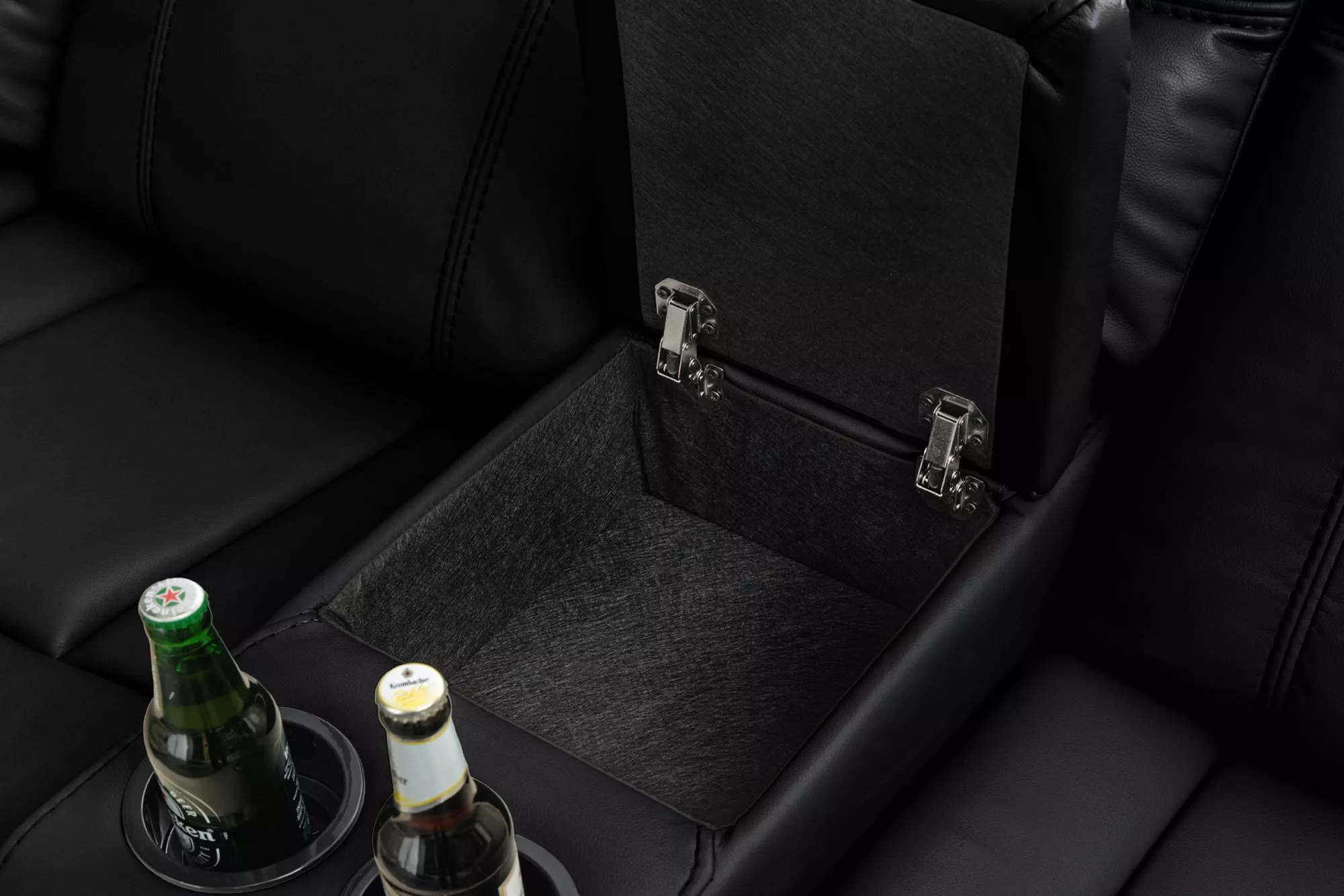 - Čtyři držáky na nápoje s průměrem 9 cm a dvě odkládací přihrádky 25 x 15 x 25 cm