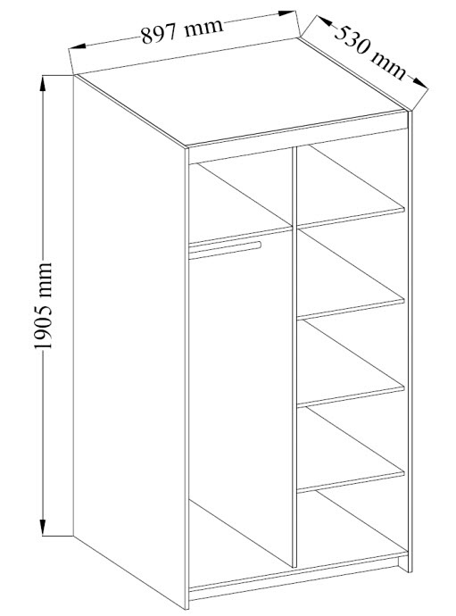 Rozměry: 89,7x190,5x53 cm