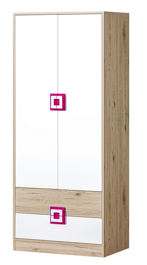 Šatní skříň NIKO 1 dub jasný/bílá/růžová