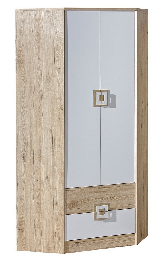 Rohová šatní skříň NIKO 2 dub jasný/bílá