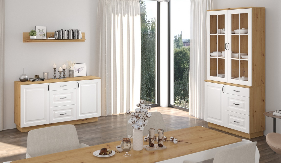 Vitrína s komodou 2D3S FEDERICO dub artisan/bílá