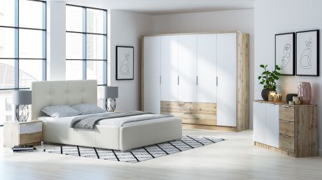 Sestava do ložnice VALTURA (skříň, komoda, 2x NS) dub wotan/bílá