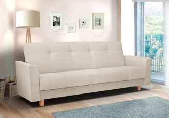 Praktická rozkládací pohovka, jejíž hlavní předností je velká postel, úložný prostor a bytelná konstrukce. Sedací část má pružinové jádro v kombinaci s kvalitní PUR pěnou. Sedáky a opěrky jsou potaženy kvalitní potahovou látkou Capri, která působí svým vzhledem jako manchester. Pohovka je vhodná do studentských a dětských pokojů k občasnému přespání dvou osob o hmotnosti max. 2x70 kg.