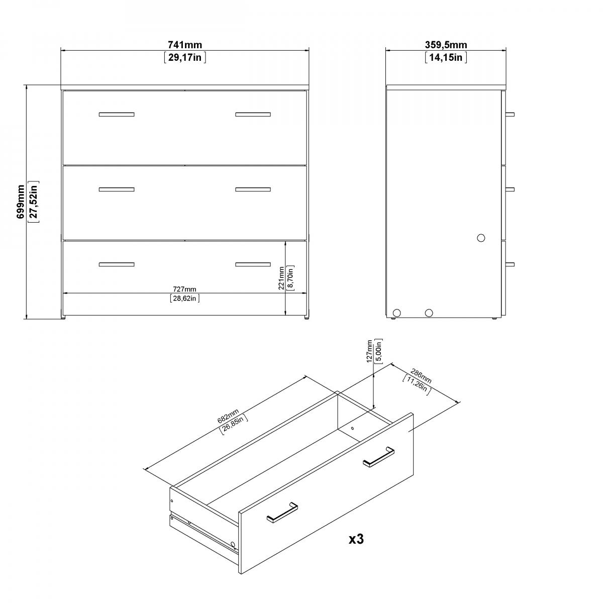 Moderní a praktická komoda Sid 3S vhodná do každé domácnosti. Komoda má tři zásuvky.