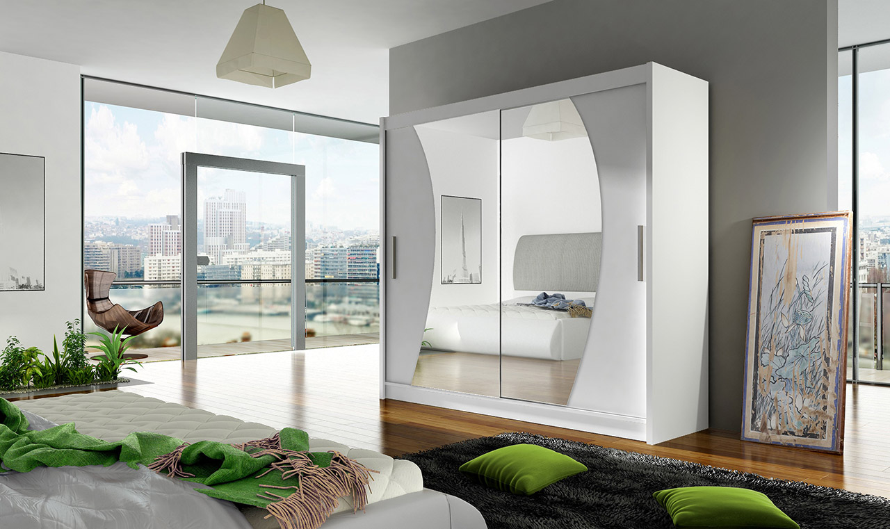 Skříň Berger s posuvnými dveřmi, je vyrobena z kvalitního lamina o síle 16 mm a hrany jsou ukončeny ABS lištou. Vodící lišty jsou vyrobeny z odolného hliníku a splňují požadavky pro každodenní užívání. Skříň je doplněna zrcadly zaříznutými do oblouku, která jí dodávají elegantní vzhled a místnost opticky zvětší a prosvětlí. Nabízíme ji ve čtyřech odstínech. Díky svým rozměrům a uspořádání poskytuje dostatek úložného prostoru. Skříň je dodávána v demontu a součástí je montážní plánek včetně všech potřebných spojovacích materiálů. Vyobrazené dekorace nejsou v ceně. Skleněná zrcadla jsou součástí skříně.