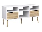 Pokud máte rádi Retro styl, pak je tato kolekce nábytku stvořena pro Vás. Nábytek je zhotoven z lamina o tl. 15 mm, které je odolné a snadné na údržbu. Díky rozmanitosti nabízených prvků, které kolekce Retro nabízí, si můžete sestavit obývací pokoj, jídelnu, ložnici, kancelář, nebo předsíň. TV stolek díky svému provední nabízí dostatek prostoru nejen pro televizi. Stolek je vybaven dvěmi zásuvkami, do kterých můžete uklidit např.ovladače, nabíjecí kabely či jiné drobnosti. Díky tomu budete mít doma přehledný a organizovaný pořádek. Retro vzhled zdůrazňují vysoké šikmé nožky a obloukové výřezy místo úchytek. Stolek nabízíme ve dvou barevných provedeních. Je dodáván v demontu a součástí je montážní plánek včetně všech potřebných spojovacích materiálů. Vyobrazené dekorace nejsou v ceně. Nábytek je dodáván z Dánska, proto doporučujeme ověřit dostupnost zboží.