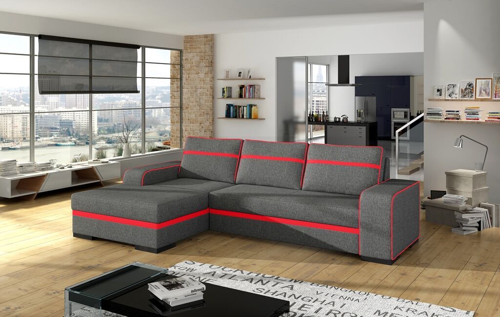 Elegantní rohová sedací souprava Funny je vhodná do každého interiéru. Umístit ji můžete ke stěně, nebo do prostoru. Sedací souprava je rozkládací a má také praktický úložný prostor. Jednoduchým rozložením vznikne dostatečně velké lůžko vhodné k příležitostnému spaní. Výplň sedáku tvoří pružiny faliste s kvalitní PUR pěnou. Tato kombinace zajistí pohodlné sezení. Sedací souprava je potažena velmi oblíbenou kvalitní látkou Inari. Zajímavým prvkem je proužek v kontrastní barvě, lemující sedací soupravu i polštáře. Tuto sedačku nabízíme v několika barevných variantách. V ceně sedací soupravy jsou 3 velké opěrné polštáře. Ostatní vyobrazené dekorace nejsou v ceně.