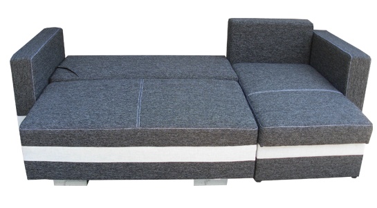 Elegantní rohová sedací souprava Rimini je rozkládací a má také 2 praktické úložné prostory. Díky svým rozměrům je vhodná i do menších pokojů. Jednoduchým rozložením pomocí automatu, vznikne dostatečně velké lůžko vhodné k příležitostnému spaní. Výplň sedáku tvoří kombinace pružin bonell s kvalitní PUR pěnou. Tato kombinace zajistí velmi pohodlné sezení. Sedací souprava je potažena kvalitní látkou v kombinaci 2 barev, a to v několika odstínech. V ceně sedací soupravy jsou 3 velké opěrné polštáře. Ostatní vyobrazené dekorace nejsou v ceně.