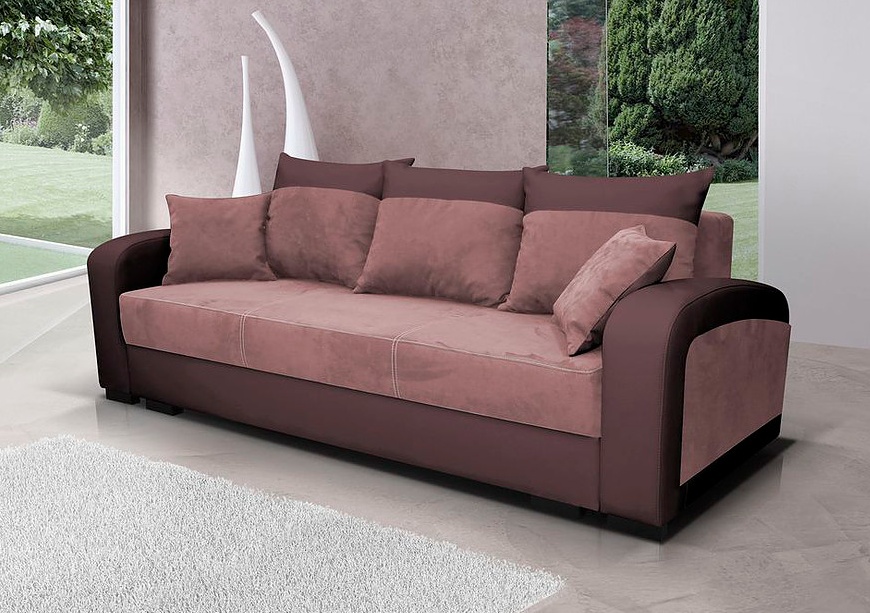 Pohovka Zara vyniká elegancí a pohodlím. Originální vzhled dodává kombinace barev a materiálů. Pohovka je potažena velmi příjemnou látkou v kombinaci s EKO kůží. Pohovka je rozkládací a samozřejmostí je i praktický úložný prostor na lůžkoviny. Výplň sedáku tvoří kombinace pružin bonell s kvalitní PUR pěnou. Jednoduchým rozložením vznikne dostatečně velké lůžko k občasnému přespání. V ceně pohovky jsou tři velké opěrné polštáře a dva melé dekorační polštářky. Ostatní vyobrazené dekorace nejsou v ceně.