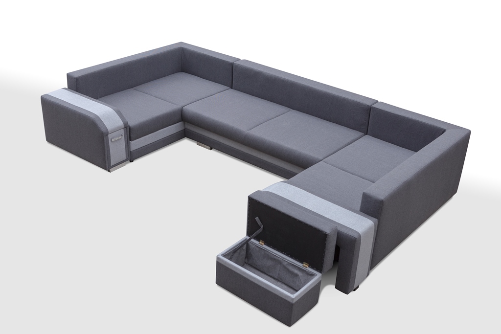 Sedací souprava Association ve tvaru U, osloví každého, kdo preferuje moderní vzhled a zároveň pohodlí a praktičnost. Sedací souprava je velmi pohodlná a dostatečně velká na posezení s přáteli, nebo rodinou. Pro případ, že se návštěva zdrží přes noc, je sedací souprava vybavena rozkladem. Pomocí automatu jednoduše sedací sopuravu přeměníte v prostorné lůžko. Sedací souprava má 3 praktické úložné prostory a další úložný prostor najdete v područi, kde je důmyslně ukrytý bar a také v taburetu. Výplň sedáků tvoří kombinace pružin faliste s kvalitní PUR pěnou. Návod na rozložení můžete shlédnout v krátkém gifu, který najdete v doplňkových fotografiích, kde také najdete fotografii s detailními rozměry. Sedací soupravu nabízíme v kvalitní potahové látce se zajímavým lemováním, a to v několika barevných provedeních. Sedací soupravu nabízíme v levém i pravém provedení, nebo také v prodedení do L. Sedací souprava bude dodána v kombinaci potahových látek, která je vyobrazena na úvodní fotografii. Vyobrazené dekorace nejsou v ceně.