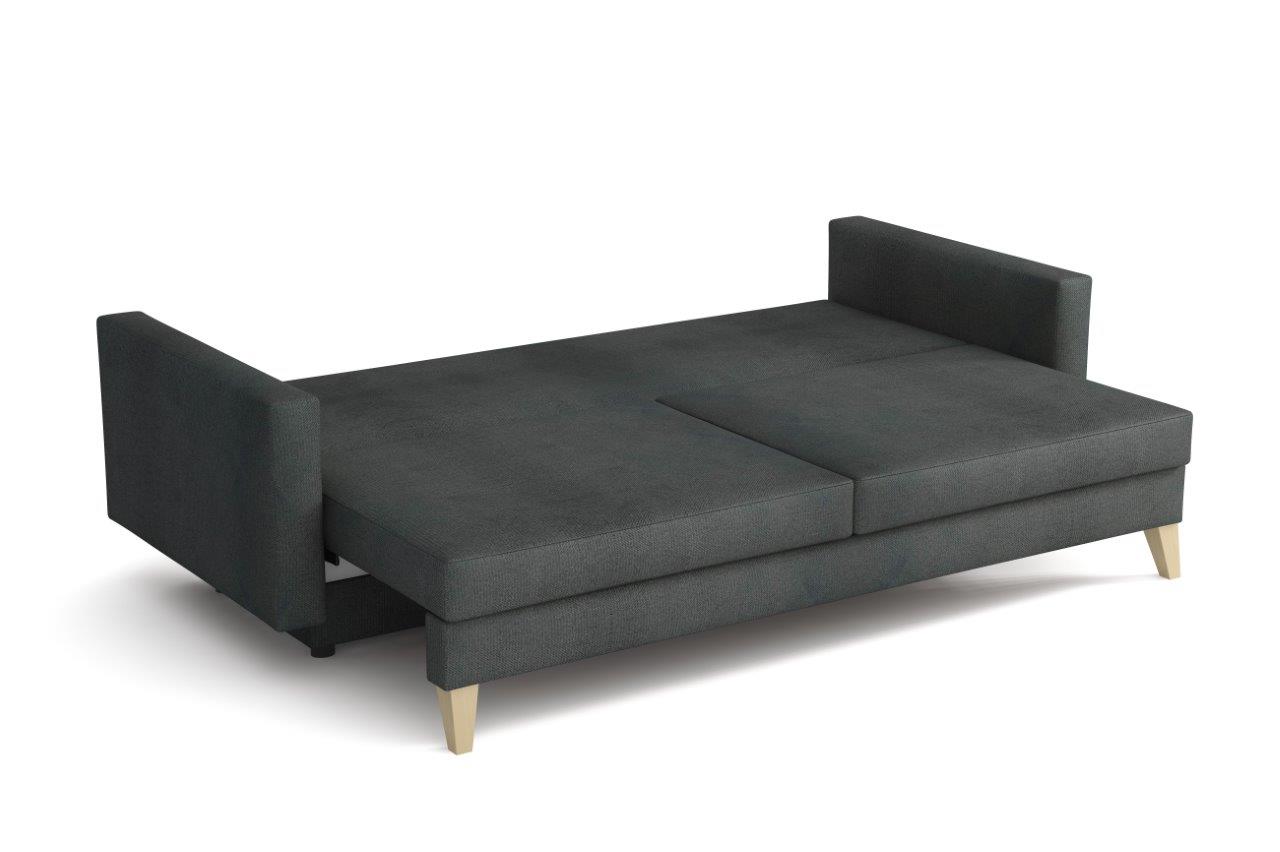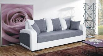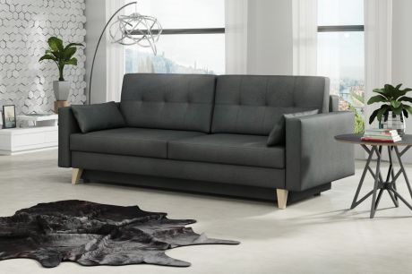 Pohovka Marina je krásným elegantním kouskem s nádechem RETRO designu a výborně zapadne do každého interiéru. Retro design podtrhují zešikmené dřevěné nohy a látkové knoflíky na opěrce. Pohovka je rozkládací a samozřejmostí je i nepostradatelný úložný prostor. Jednoduchým rozložením pomocí automatu vznikne dostatečně prostorné lůžko občasnému přespání Vaší návštěvy. Výpň sedáku tvoří vlnité pružiny v kombinaci s pružinami bonell a kvalitní PUR pěnou. Pohovka je celočalouněná, takže ji můžete umístit i do prostoru. Výborně se hodí do obývacího pokoje, do pracovny či pokoje pro hosty. Pohovku nabízíme v několika trendy barvách. Vyobrazené dopňky a dekorace nejsou v ceně. Zobrazení barev produktu na fotograii se může nepatrně lišit od skutečnosti.