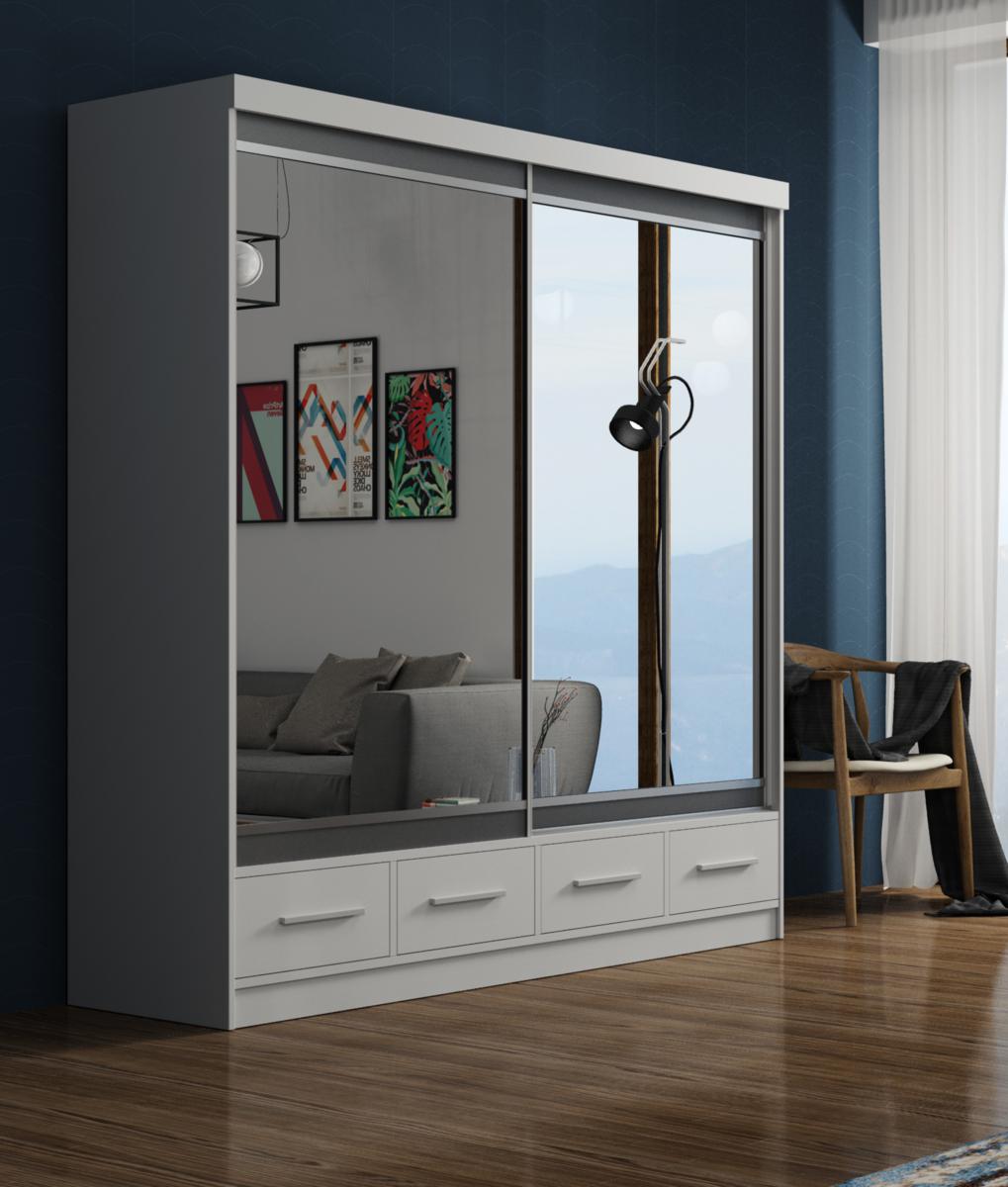 Šatní skříň Margita je vyrobena z lamina. Má posuvné dveře, které šetří prostor a na dveřích skříně jsou zrcadla, které místnost opticky zvětší a prosvětlí. Díky svému vnitřnímu uspořádání (vyobrazeno v doplňkových fotografiích) nabízí skříň dostatek úložného prostoru. Skříň je také vybavena zásuvkami, do kterých můžete uložit drobnosti. Skříň Margo najde uplatnění např. v dětském nebo studentském pokoji, v předsíni, v ložnici i v obývacím pokoji. Nabízíme ji v rozměrech 120 cm, 150 cm, 200 cm a 250 cm. Všechny nabízené rozměry jsou dostupné v černé a bílé barvě a dále také v dekoru sonoma. Skříň je dodávána v demontu a součástí je montážní plánek včetně všech potřebných spojovacích prvků. Vyobrazené doplňky a dekorace nejsou v ceně.
