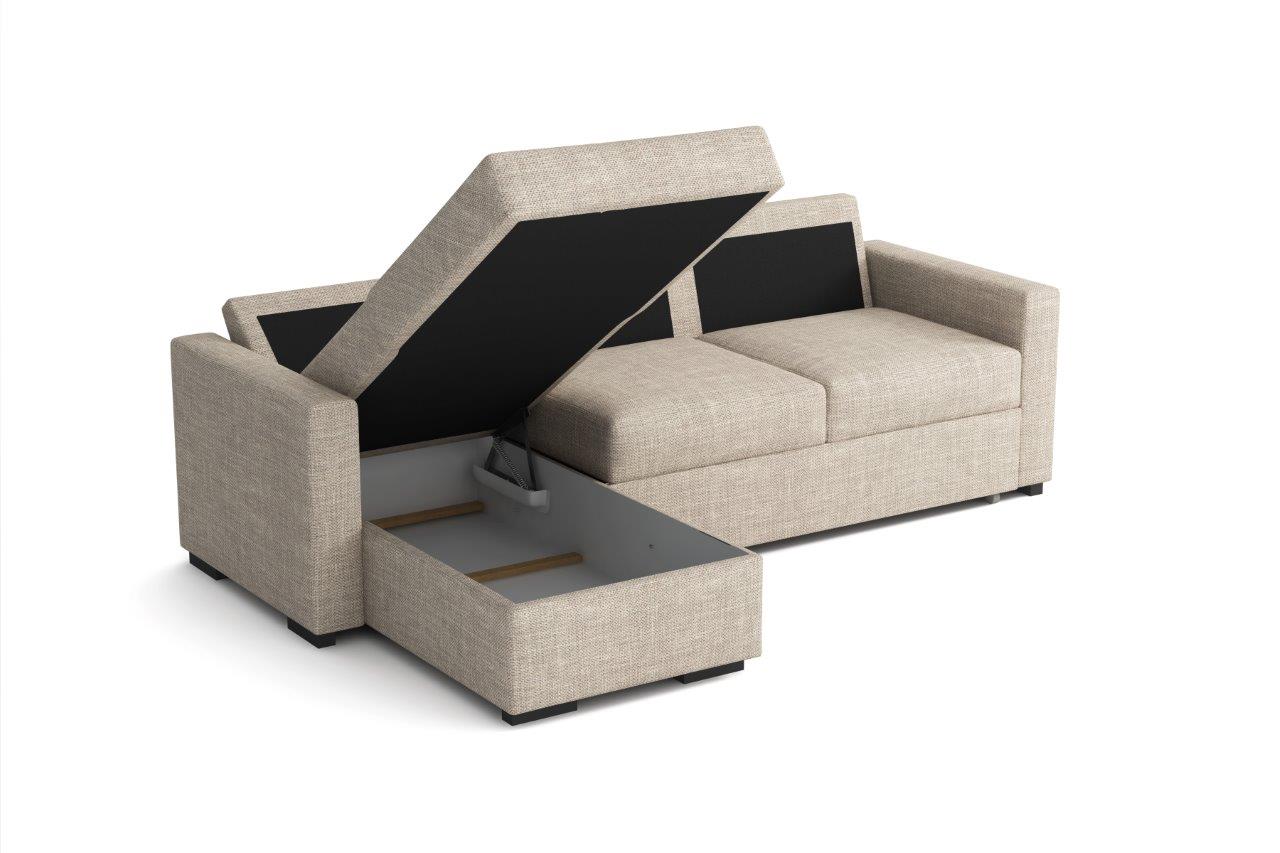 Tomáš je moderní rohová sedací souprava s nadčasovým designem. Její předností je pohodlí, praktičnost a univerzální použití. Můžete si ji podle potřeby sestavit jako levou nebo pravou, což je výhoda při zařizování obývacího pokoje. Nemusíte přemýšlet do jakého rohu postavíte sedací soupravu, jednoduše ji podle potřeby přizpůsobíte. Pohodlí při sezení zajišťuje kombinace pružin faliste s kvalitní PUR pěnou a velké opěrné polštáře, které jsou odnímatelné, takže si je můžete přizpůsobit svým potřebám. Praktickou stránkou sedací soupravy je úložný prostor a možnost rozložení k občasnému přespání Vaší návštěvy. Sedací souprava je potažena látkou jednobarevnou látkou a v nabídce najdete více barevných variant. V ceně sedací soupravy jsou 3 velké opěrné polštáře. Ostatní vyobrazené dekorace nejsou v ceně. Zobrazení barev produktu na fotograii se může nepatrně lišit od skutečnosti.