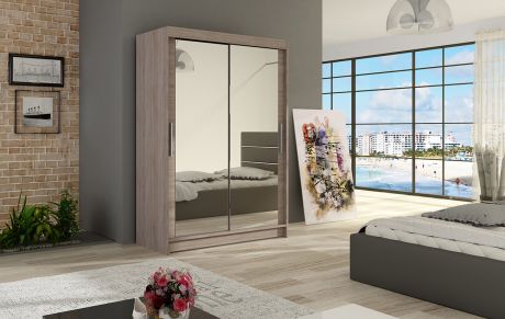 Moderní a elegantní design skříně osloví i náročné zákazníky. Eleganci podtrhují dlouhé stříbrné úchyty a zrcadla na dveřích skříně. Je vyrobena z lamina o síle 16 mm a hrany jsou ukončeny ABS lištou. Vodící lišty jsou vyrobeny z odolného hliníku a splňují požadavky pro každodenní užívání. Díky svému uspořádání poskytuje dostatek úložného prostoru. Skvěle se hodí do ložnice, předsíně, dětského, nebo studentského pokoje. Skříň je dodávána v demontu a součástí je montážní plánek včetně všech potřebných spojovacích materiálů. Vyobrazené dekorace nejsou v ceně. Součástí jsou i skleněná zrcadla, která jsou nalepena na dveřích skříně.