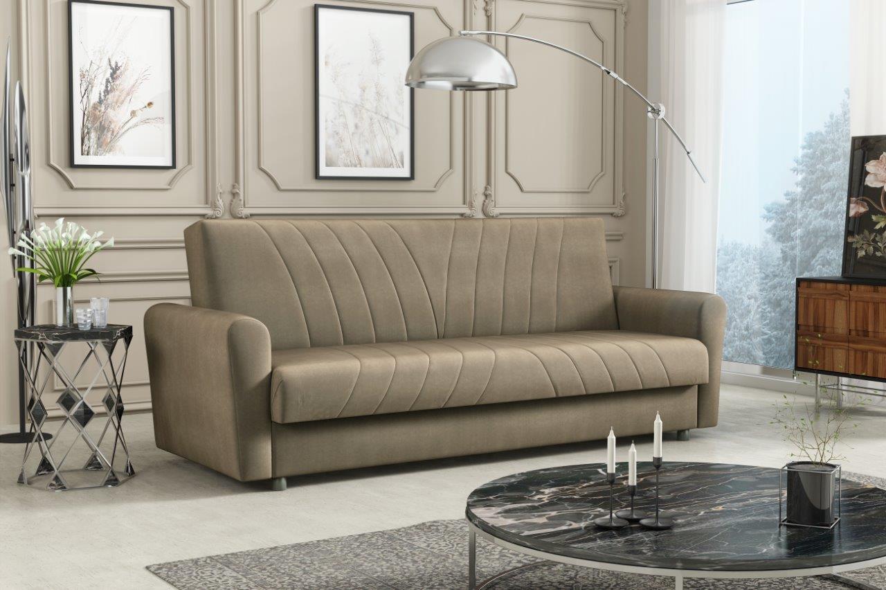 Příjemným relaxem po dlouhém a vyčerpávajícím dni v zaměstnání, je převážně pohodlná pohovka, kde se pohodlně usadíte se šálkem dobré kávy, čaje, nebo sklenkou vína. K tomuto účelu je pohovka Lana jako stvořená. Jakmile se v ní jednou uvelebíte, jen tak něco vás z ní nevyžene. Pohovka má jednoduchý a zároveň elegantní design, který skvěle doplní jakýkoliv interiér. Využijete ji nejen v obývacím pokoji. Poslouží všude tam, kde je pohodlí prioritou. Můžete ji tedy umístit i do kanceláře, pracovny, nebo pokoje pro hosty. Pohovka Lana je nejen velmi pohodlá, ale také praktická. Pohodlí při sezení zajišťují pružiny typu bonell v kombinaci s kvalitní PUR pěnou. Praktickou stránkou pohovky je možnost rozložení k příležitostnému přespání návštěvy a nezbytný úložný prostor, který využijete např.na lůžkoviny. Pohovku nabízíme ji v několika trendy odstínech. Zobrazení barev na fotograii se může od skutečnosti lišit. Vyobrazené dopňky a dekorace nejsou v ceně.
