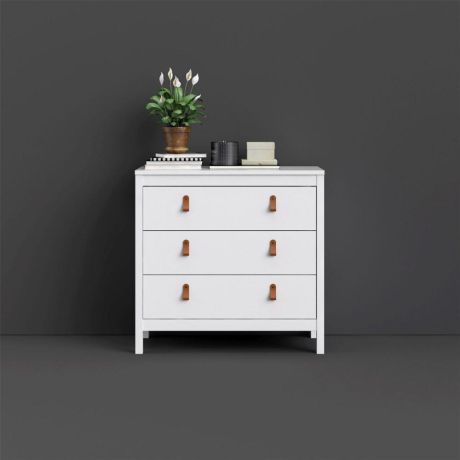 Komoda Real skvěle zapadne do moderního i stylového interiéru. Stačí změnit drobný detail, kterým jsou v tomto případě úchytky a z jemného stylu provence, rázem budete mít moderní kus, který skvěle zapadne např. do industriálního stylu. Oba typy úchytek, které jsou vyobrazené na fotografii, jsou součástí balení. Komoda je vyrobená z lamina, které je odolné a snadné na údržbu. Vlivem nastavení monitorů, nebo displejů telefonů, se zobrazení barev na fotograii může od skutečnosti lišit. Vyobrazené dopňky a dekorace nejsou v ceně. Nábytek je dodávaný z Dánska, proto doporučujeme ověřit dostupnost zboží.