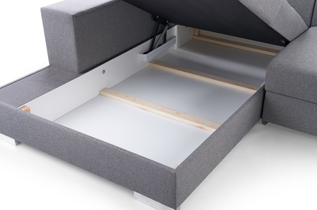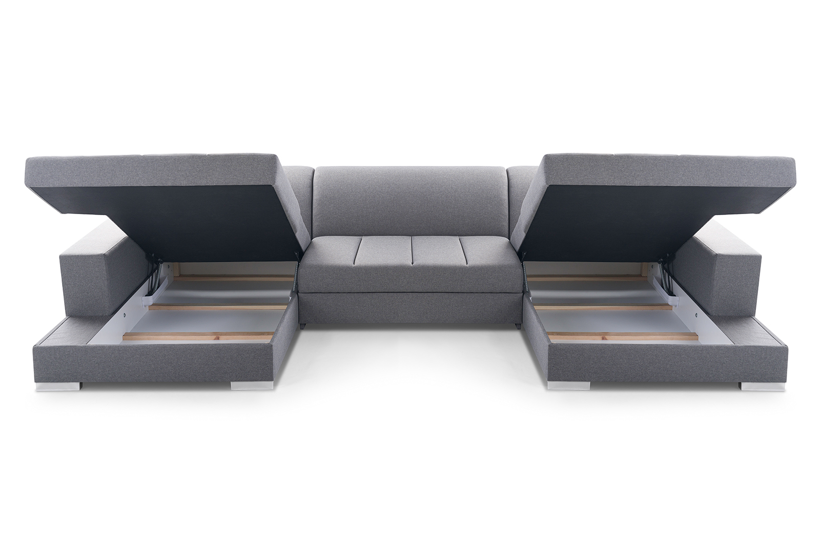 Sedací souprava Miriam je vyrobena v jednoduchém elegantním designu, který se hodí do všech interiérů. Sedací souprava je rozkládací. Jednoduchým rozložením vytvoříte dostatečně velké lůžko k příležitostnému přespání Vaší návštěvy. Samozřejmostí je i praktický úložný prostor po obou stranách, který můžete využít např. na lůžkoviny. Sedací souprava je potažena velmi kvalitní a pevnou látkou, která je vhodná pro náročné použití v domácnostech. Je celočalouněná, takže je vhodná i k umístění do prostoru.