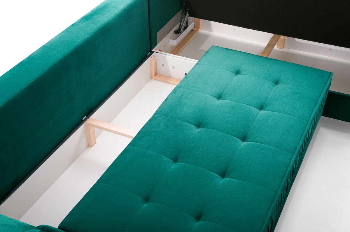 Sedací souprava Amalia je vyrobena v jednoduchém elegantním designu, který se hodí do všech interiérů. Sedací souprava je rozkládací. Jednoduchým rozložením vytvoříte dostatečně velké lůžko k příležitostnému přespání Vaší návštěvy. Samozřejmostí je i praktický úložný prostor po obou stranách, který můžete využít např. na lůžkoviny. Sedací souprava je potažena velmi kvalitní a pevnou látkou, která je vhodná pro náročné použití v domácnostech. Je celočalouněná, takže je vhodná i k umístění do prostoru.