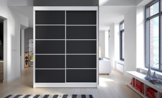 Skříň je vyrobena z kvalitního lamina. Díky svému vnitřnímu uspořádání nabízí dostatek úložného prostoru, posuvné dveře šetří prostor a zrcadlo ho opticky zvětšuje. Skříň je vhodná do ložnice, dětského nebo studentského pokoje, do předsíně i kanceláře. Vnitřní uspořádání skříně je vyobrazeno na fotografii. Skříň je dodávána v demontu. Součástí jsou i skleněná zrcadla, která jsou nalepena na dveřích skříně a také montážní plánek včetně všech potřebných spojovacích materiálů. Vyobrazené dekorace nejsou v ceně.