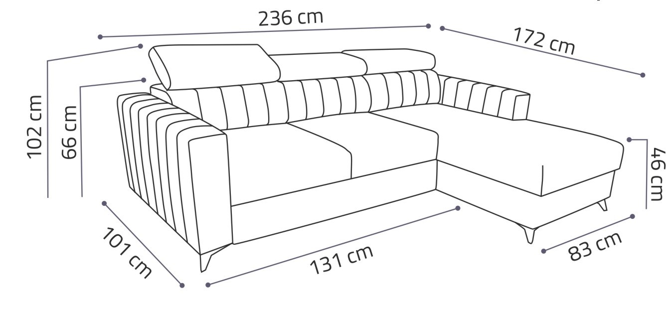Sedací souprava Mildred Premium osloví každého, kdo preferuje moderní vzhled a zároveň pohodlí a praktičnost. Sedací souprava je velmi pohodlná a dostatečně velká na posezení s přáteli, nebo rodinou. Pro případ, že se návštěva zdrží přes noc, je sedací souprava vybavena rozkladem, díky kterému sedací soupravu jednoduše přeměníte v prostorné lůžko. Sedací souprava má praktický úložný prostor, který můžete využít např., na lůžkoviny. Pohodlí při sezení zajišťuje výplň sedáků, kterou tvoří kombinace pružin faliste s kvalitní PUR pěnou. Komfort a pohodlí při odpočinku zvyšuje polohovací opěrka hlavy. Sedací soupravu nabízíme v levém i pravém provedení. Správná barva potahové látky je zobrazena na první fotografii. Ostatní fotografie jsou pouze ilustrační.