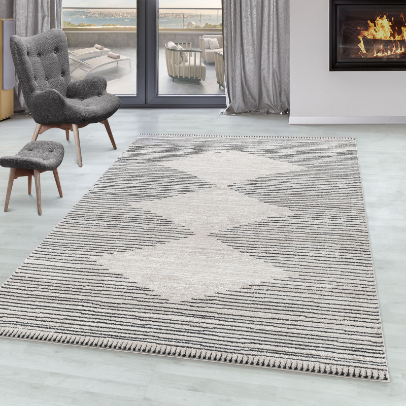 Moderní koberce TAZNAXT od značky Ayyildiz v boho stylu používají neutrální krémovou, béžovou a šedou barvu. Vyrábí se z jemného polyesteru, a proto jsou velmi příjemné na dotek i došlap. Tomu napomáhá a vyšší střižený vlas. Další charakteristikou polyesteru je to, že jsou vlákna lesklá a odolná. Rubová strana je tvořena jutou a koberce jsou obšité ze všech stran. Dále mají antistatickou úpravu a nejlépe se hodí do ložnice nebo obývacího pokoje.Ayyildiz koberce Poznejte koberce Ayyildiz