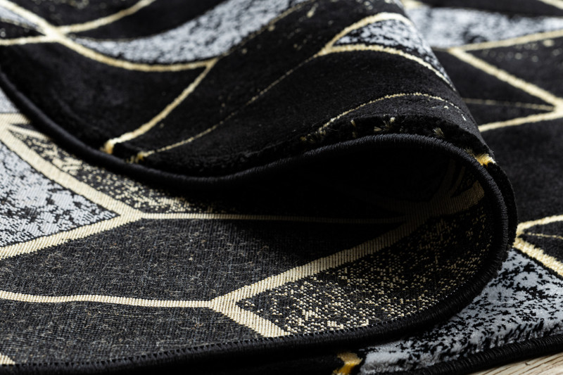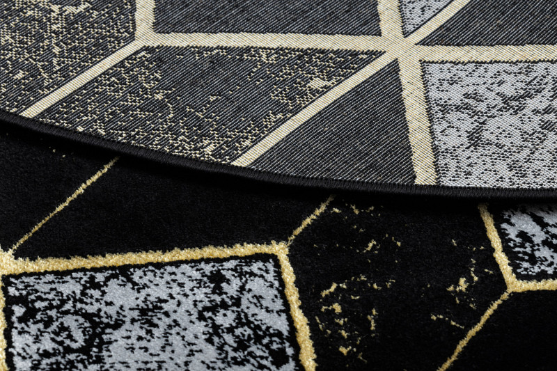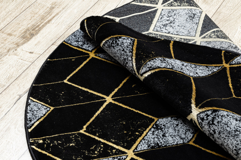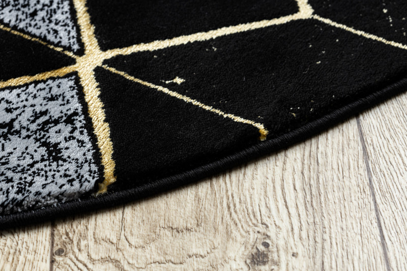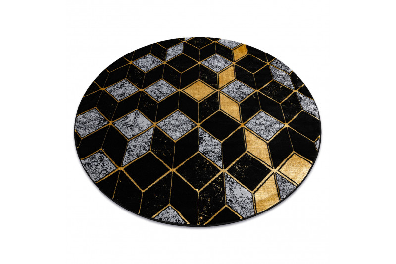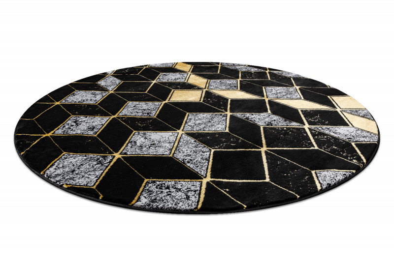 Kusový koberec Gloss 400B 86 3D geometric black/gold kruh - 150x150 (průměr) kruh cm