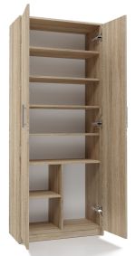 Policová skříň splňuje veškeré požadavky pro ukládání oblečení. Vnitřní uspořádání skříně poskytuje dostatek prostoru na oblečení. Skříň má univerzální využití a je vyrobena z 16 mm lamina, které je odolné a snadné na údržbu. Skříň je dodávaná v demontu a součástí je montážní plánek včetně všech potřebných spojovacích materiálů. U tohoto typu skříně mohou být některé nepohledové hrany desek nebo plochy neopáskovány v barvě skříně (především vrchní půda či hrany dveří, apod.). Vyobrazené dekorace nejsou v ceně.