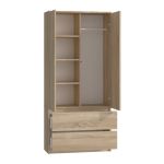 Šatní skříň Malvína v trendy barvách a moderním designu je praktický kus nábytku, který najde své uplatnění v ložnici, dětském pokoji, ale také v kanceláři nebo domácí pracovně. Nabízí dostatek úložného prostoru s možností instalace polic nebo šatní tyče v závislosti na vašich požadavcích. Dvířka se systémem TIP-ON se otevírají po jemném zatlačení čela dvířek. Nábytek je vyroben z nejkvalitnější laminované desky odolné proti poškrábání a vlhkosti, hrany jsou zakončené ABS materiálem.
