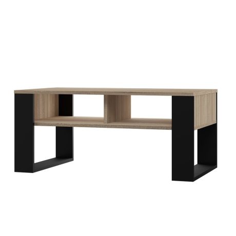Konferenční stolek Sava v Loft stylu podtrhne moderní charakter každého obývacího pokoje, kanceláře i haly. Stolek s praktickými odkládacími policemi je vyroben z dvojitě laminované desky se zvýšenou tvrdostí (zakončené ABS), díky čemuž je povrch nábytku odolnější proti poškrábání.