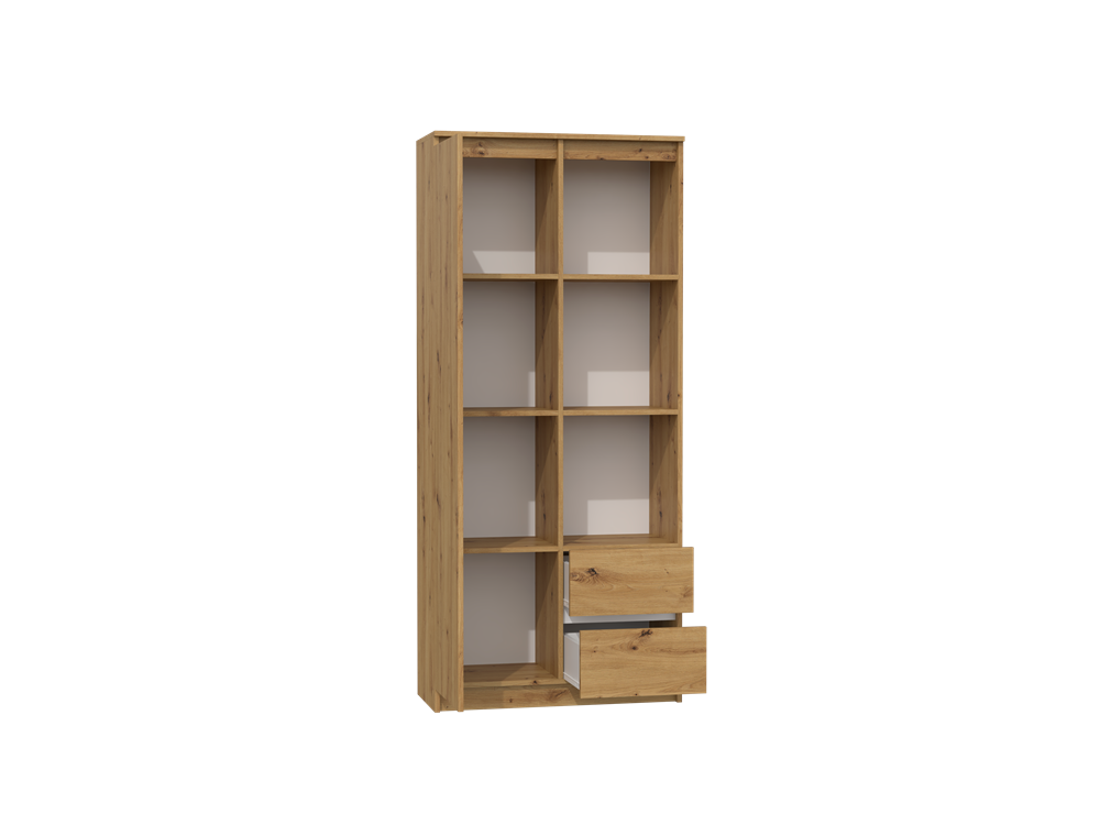 Moderní knihovna Ben v minimalistickém designu je praktický kus nábytku, který si najde své místo jak v obývacím pokoji, tak i v kanceláři nebo ateliéru. Knihovna je vyrobena z nejkvalitnější laminované desky odolné proti poškrábání a vlhkosti, hrany jsou povrchově upraveny ABS.