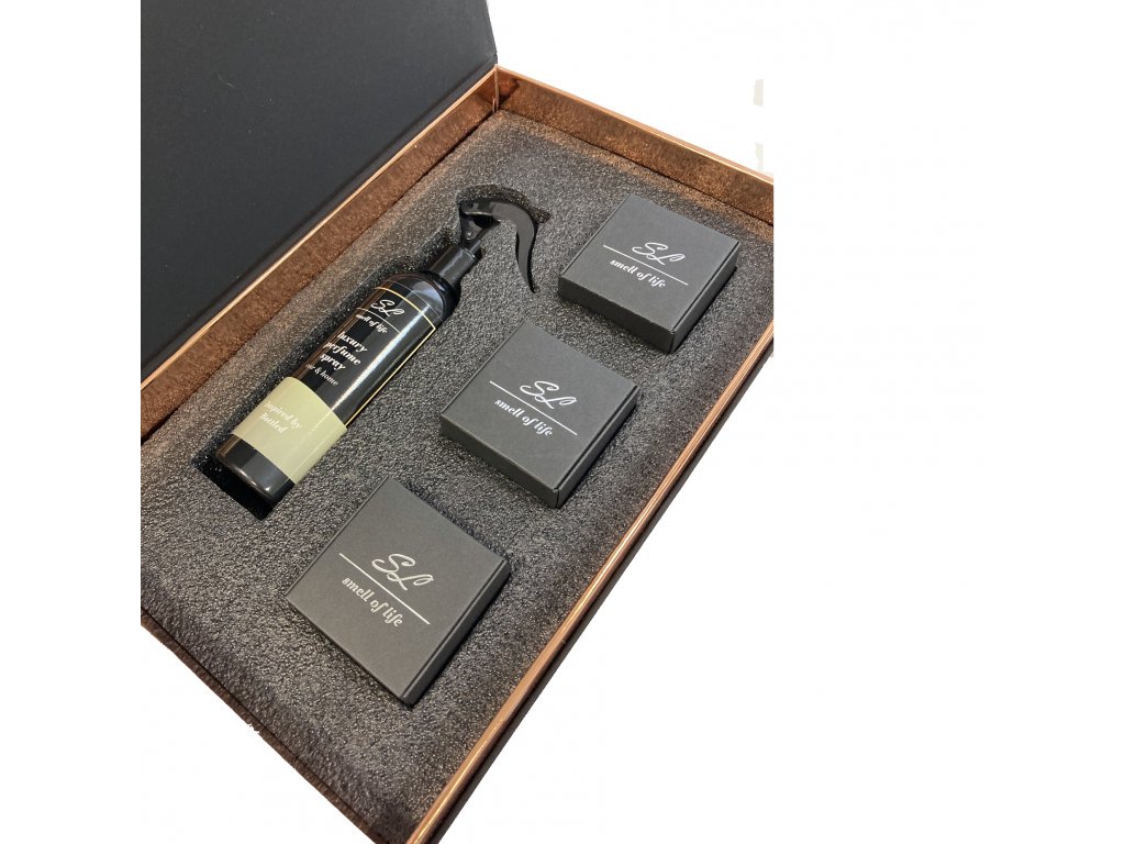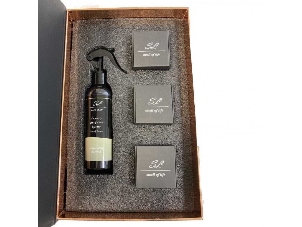 Luxusní dárková sada rozprašovače pro byt/auto a 3 ks vůně do auta pro milovníky provoněných aut.