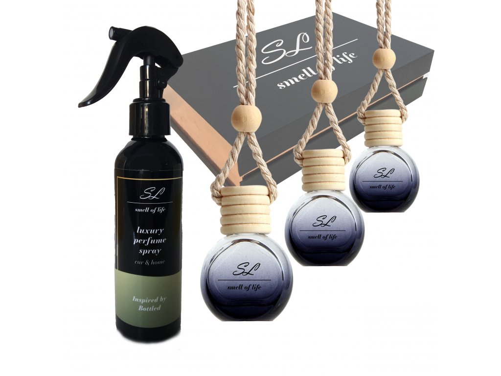 Smell of Life Dárková sada 3 for HIM - Parfém do bytu/auta inspir. Bottled 200 ml - 3 x Vůně do auta inspir. Bottled, One Million a Sauvage 10 ml