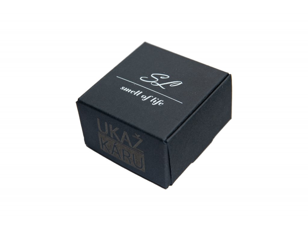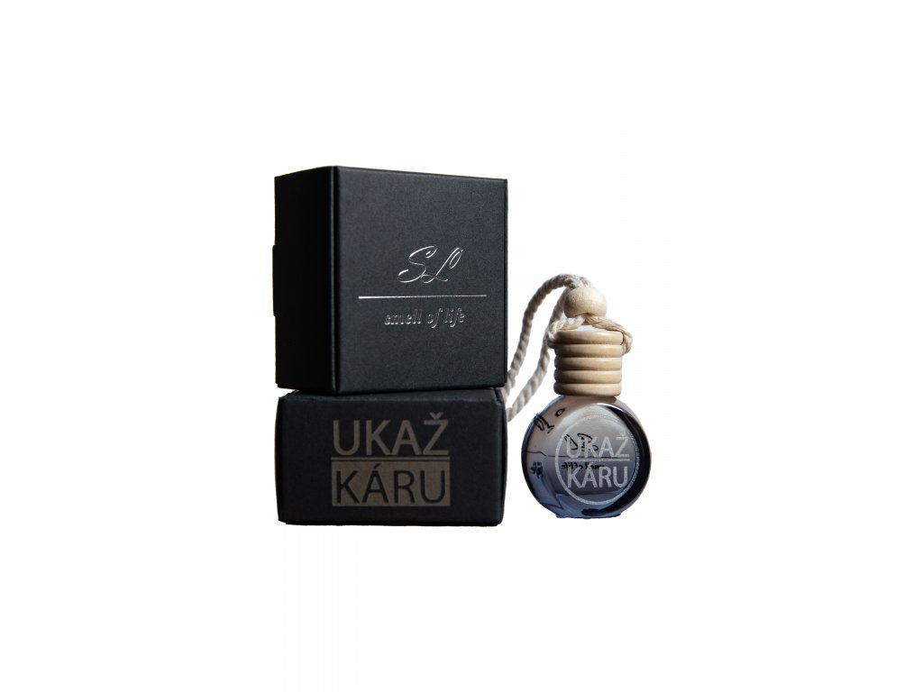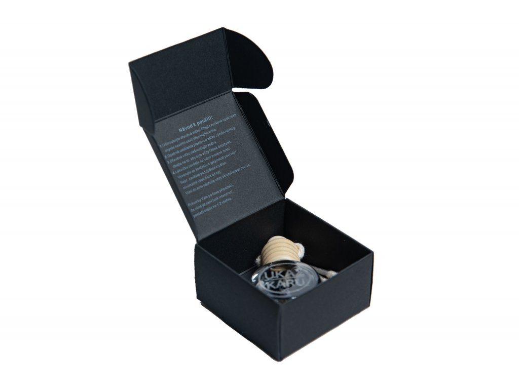 Vůně je dodávána zabalená v černé dárkové krabičce s etiketou Ukaž Káru.