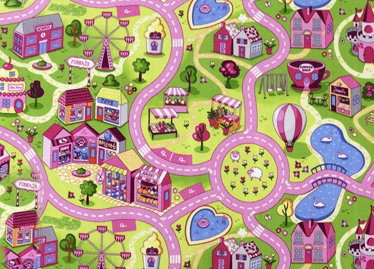 Koberce z řady Sweet Town jsou vyráběny v několika velikostech šitých na míru do dětských pokojů. Hezké výrazné barvy a zábavné motivy jsou jasnou předzvěstí toho, že z těchto koberců se stávají bestsellery. Mnoho zákazníků již má tyto koberce doma a nemohou si je vynachválit. Kvalitní využitý materiál (polyamid) toho vydrží opravdu hodně, včetně náruživého dětského hraní.