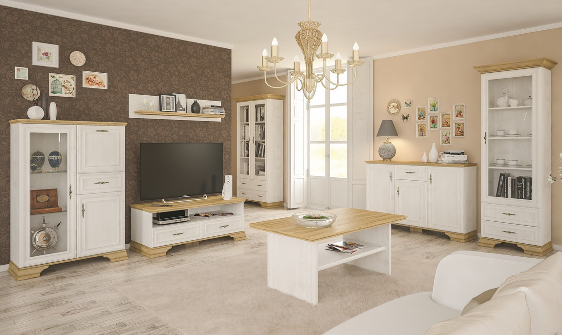 Postel 160 x 200 cm ze sektorové řady nábytku v romantickém stylu. Nábytek je vyroben z kvalitní LTD v kombinaci s MDF v barevné kombinaci borovice andersen/zlatý dub. Rošt je součástí postele, matraci je třeba dokoupit, doporučený rozměr 2x 80 x 200 cm nebo 160 x 200 cm. V naší nabídce najdete další jednotlivé prvky tohoto nábytku, ze kterého si můžete zařídit obývací pokoj dle vlastních potřeb. Dodáváme v demontovaném stavu.