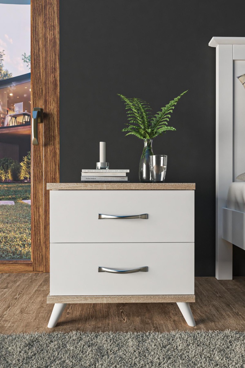 PERHO noční stolek na nožičkách, dub Sonoma/bílá