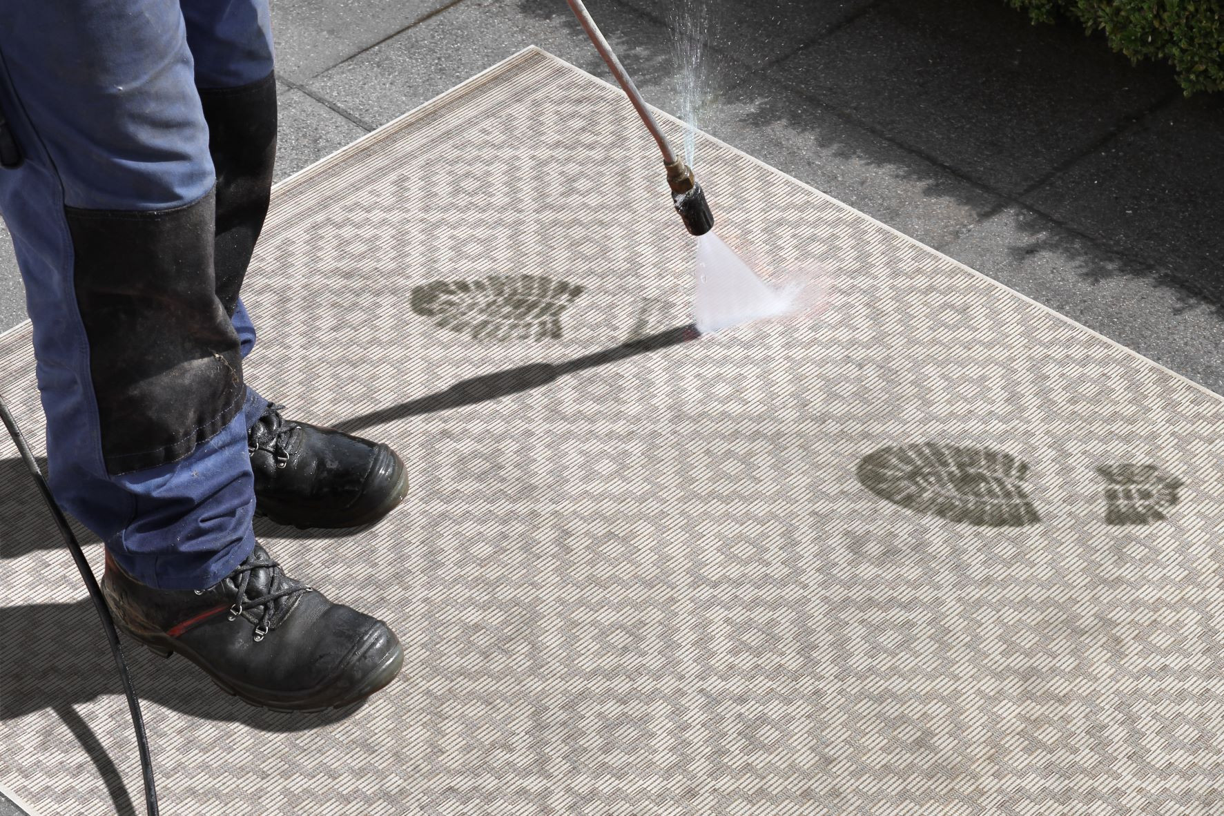 Představení koberců boucléKoberec Meadow 102467 je vyroben ze 100% polypropylenu. Jedná se o nenáročný outdoorový koberec, který má jednoduché barvy a zajímavý vzor. Koberec velmi rychle schne, je velice odolný a houževnatý.