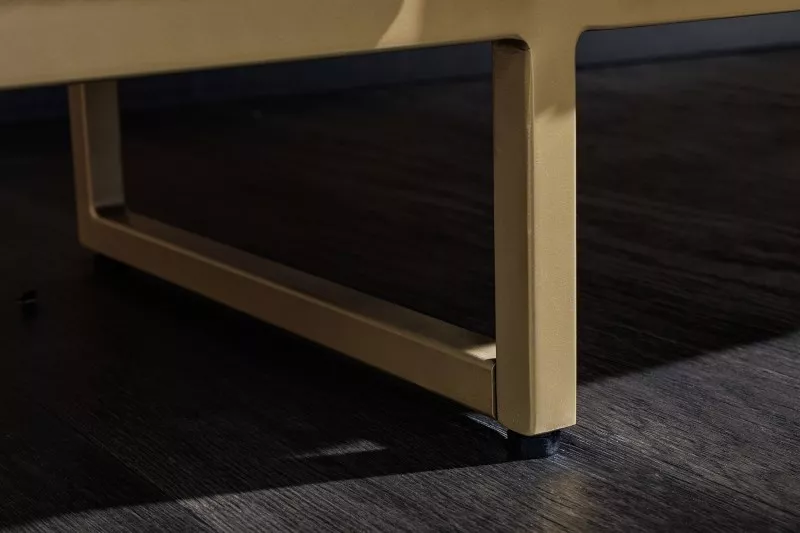 Má rozměry 160 cm na šířku, 50 cm na výšku a 40 cm na hloubku, což ho činí ideální pro umístění do větších i menších prostor. Přírodní korpus a mramorová horní deska, spolu s jemnými zlatými detaily a přední rýhovanou stranou vytváří elegantní symbiózu, která je současně moderní a nadčasová. Korpus je vyroben z kvalitního lakovaného mangového dřeva, které je známé svou odolností a dlouhou životností.