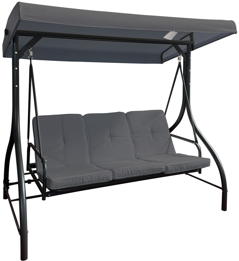 Stylová a pohodlná zahradní houpačka s pevnou a stabilní kovovou konstrukcí - lze rozložit do polohy k ležení pro ještě větší odpočinek. Houpačka obsahuje polstry - jsou položeny na látce, která je navlečena na kovovém rámu. Ocelová konstrukce ošetřena práškovou barvou, podušky (voděodolný polyester 160 g), výplň polyesterová vata 8 cm, stříška (voděodolný polyester 180 g), pro 3 osoby Možné rozložit na lůžko.| výška výrobku: | 173cm |