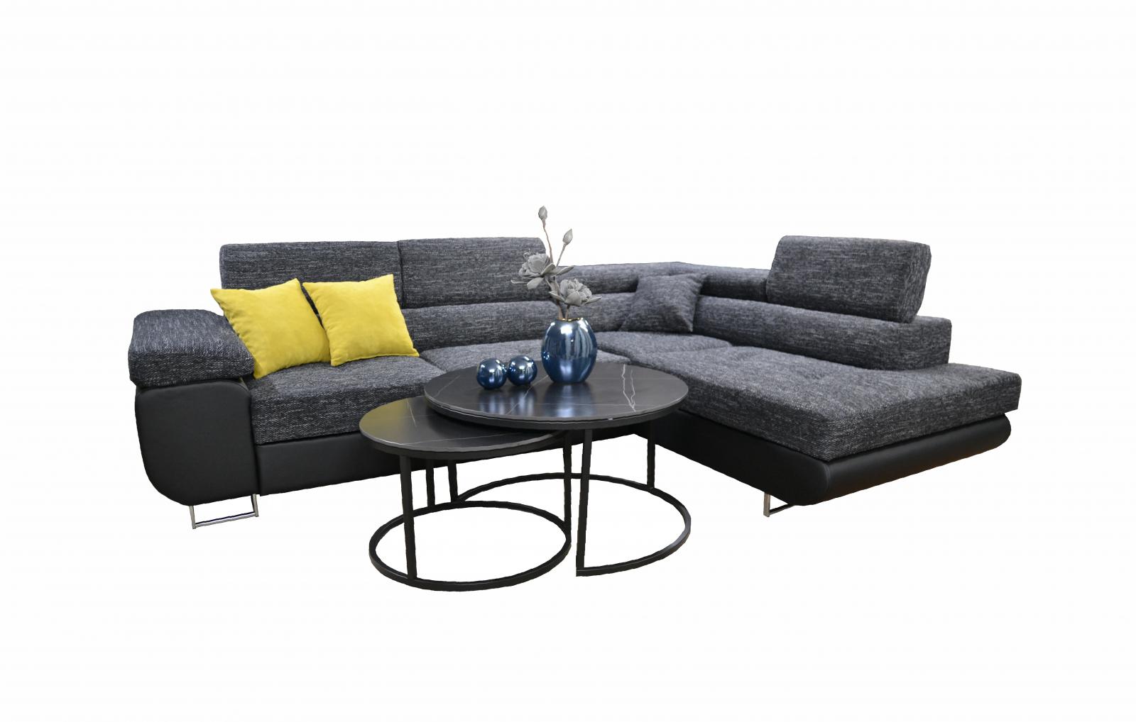 Sedací souprava Tony se stane příjemným centrem odpočinku, nebo setkání s rodinou a přáteli. Je velmi pohodlná, praktická a nabízí dostatek místa k sezení. Praktickou stránku sedací soupravy zajišťuje možnost rozložení k příležitostnému přespání a také nepostradatelný úložný prostor. Pohodlí při sezení zajišťuje výplň sedáků, kterou tvoří kombinace pružin s kvalitní PUR pěnou. Při odpočinku, nebo sledování televize Vám zvýší pohodlí polohovací opěrky. Sedací souprava je potažena kvalitní látkou a bude dodána v kombinaci barev, které jsou na fotografiích. Sedací soupravu nabízíme v levém i pravém provedení. Vyobrazené doplňky a dekorace nejsou v ceně.
