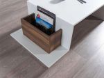 Konferenční stolek přináší eleganci a funkčnost do vašeho obývacího pokoje. Díky své kombinaci bílé a ořechové barvy se snadno začlení do jakéhokoli interiéru. Obdélníkový tvar a praktický regálek poskytují dostatek prostoru pro všechny vaše potřeby, ať už jde o knihy, dekorace nebo dálkové ovladače.
