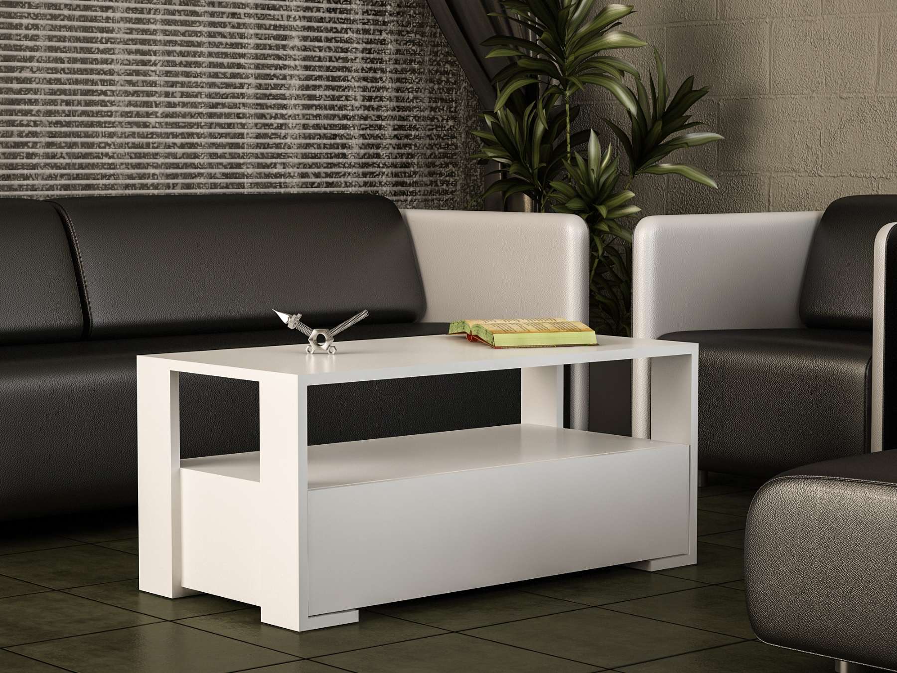 Konferenční stolek kombinuje moderní design s funkčností. Bílá barva dodává interiéru svěžest a čistotu, zatímco praktické odkládací police a skříňka poskytují dostatek úložného prostoru pro všechny vaše potřeby. Obdélníkový tvar je ideální pro umístění před pohovku, kde může sloužit nejen jako stylový prvek, ale i jako praktický pomocník pro vaše každodenní aktivity.