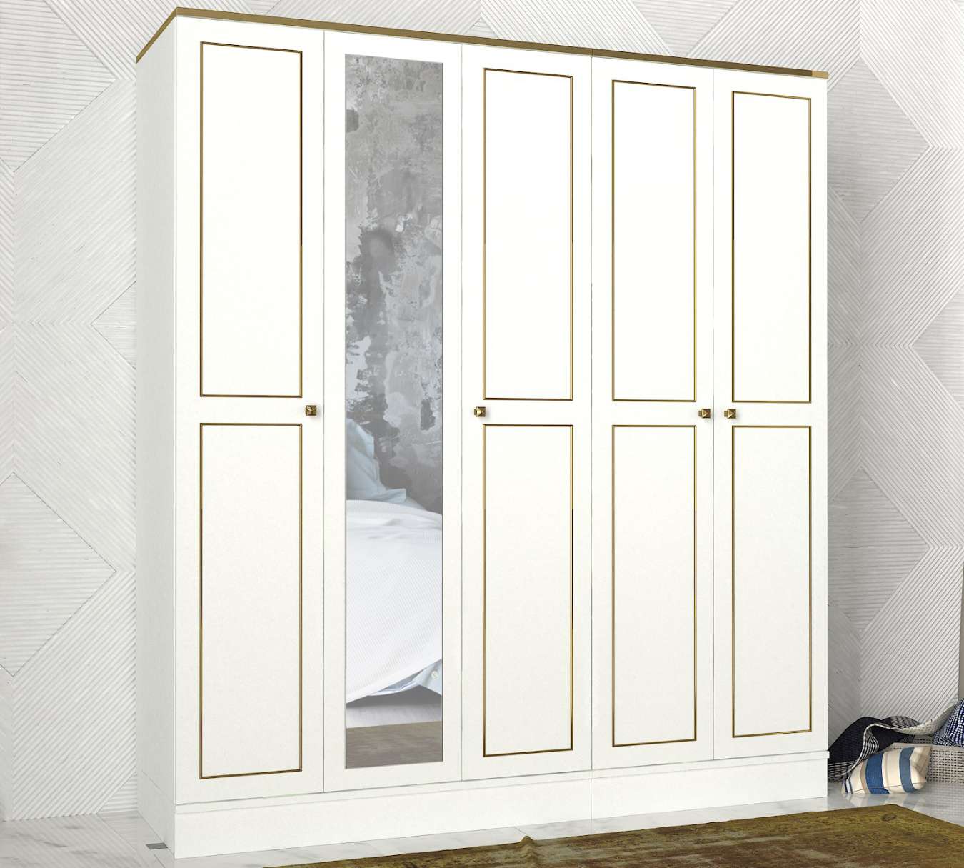 Šatní skříň vyniká svým elegantním designem v bílé barvě, který dodá vaší ložnici svěží a moderní vzhled. Praktické vnitřní uspořádání s třemi šatními tyčemi, čtyřmi policemi a zrcadlem nabízí dostatek úložného prostoru pro vaše oblečení a další předměty, zatímco zrcadlo opticky zvětšuje prostor a dodává interiéru hloubku.