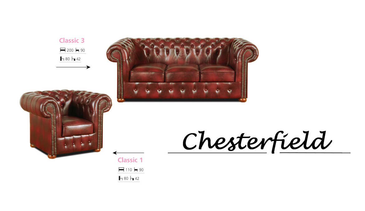 Objevte nadčasovou eleganci a prvotřídní pohodlí s koženými křesly a pohovkami Chesterfield. Každý detail od klasického hlubokého prošívání až po luxusní pravou hovězí kůži zaručuje jedinečný styl, který povýší váš domov či komerční prostor na novou úroveň. Vynikající řemeslné zpracování zaručuje nejen krásu, ale i dlouhou životnost. Pohovky Chesterfield jsou k dispozici v různých velikostech od křesel, dvoumístných a třímístných pohovek, až po prostorné čtyřmístné, rohové a atypické varianty.