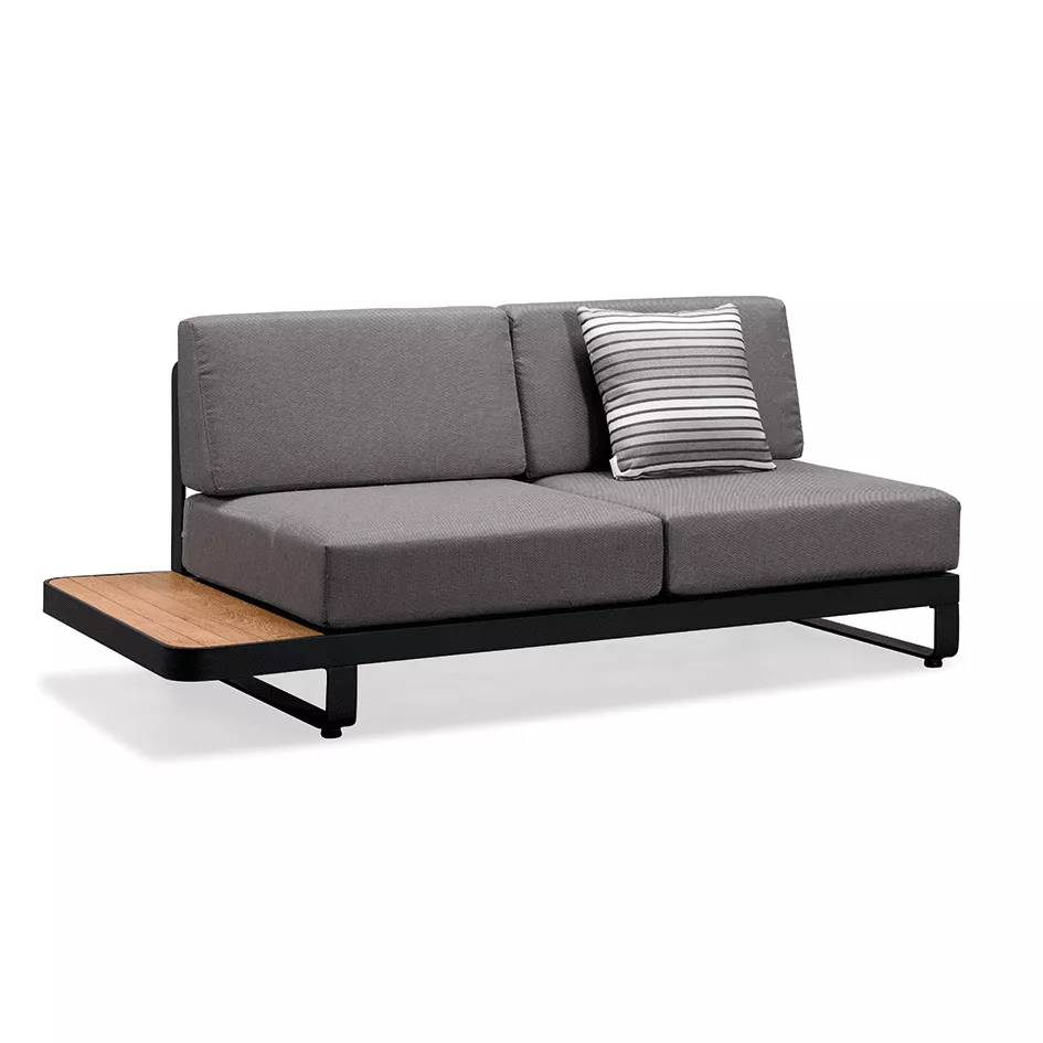 Rohová 4místná sedací souprava New Polo kombinuje sofistikovaný design s prvotřídními materiály. Tato exkluzivní série se skládá z rohové pohovky a elegantního konferenčního stolku z teakového dřeva. Jemné a precizně zpracované linie se zde snoubí s robustním černým hliníkovým rámem a teakovými detaily. Teplý odstín teakového dřeva v kombinaci s šedými polstry vytváří luxusní a elegantní vzhled, který podtrhuje celkovou velkorysost této sestavy. Teakové dřevo je jedním z nejlepších materiálů pro výrobu zahradního nábytku díky svým výjimečným vlastnostem. Jednou z hlavních výhod teaku je jeho mimořádná odolnost. Díky vysokému obsahu přírodních olejů je teakové dřevo přirozeně voděodolné a nenasákavé, což znamená, že nábytek vyrobený z tohoto materiálu dokáže odolávat dešti, sněhu i extrémním teplotám bez výrazného poškození. To také zabraňuje vzniku plísní a hniloby, což je u zahradního nábytku zásadní.