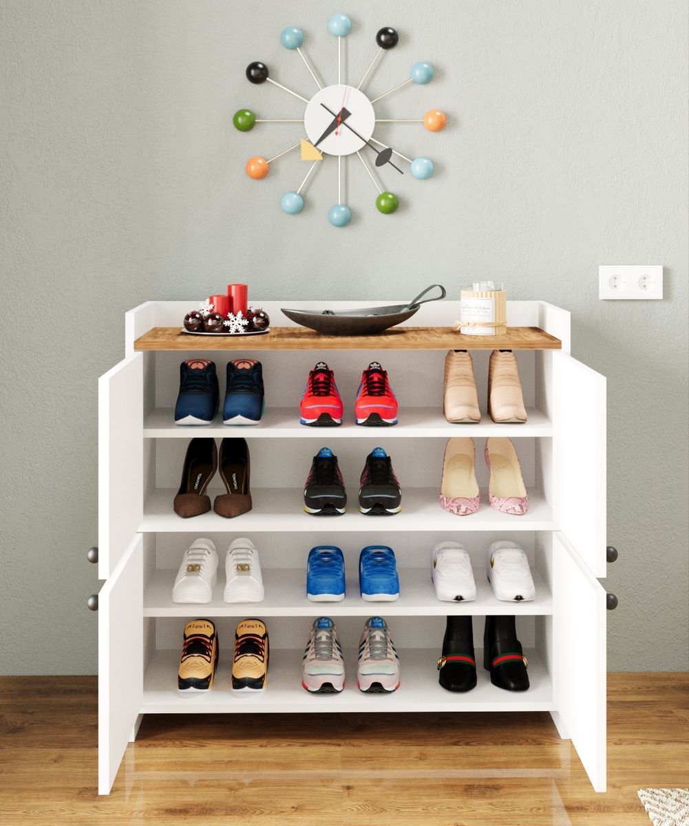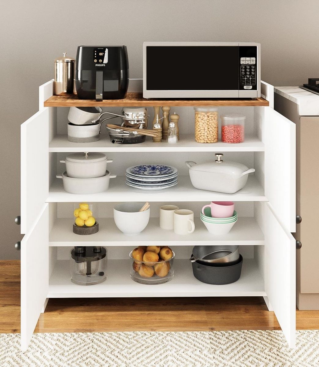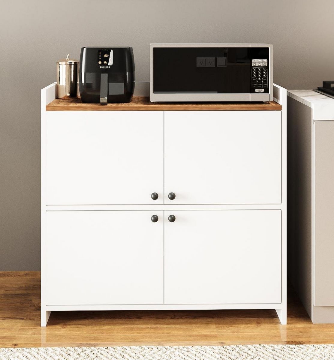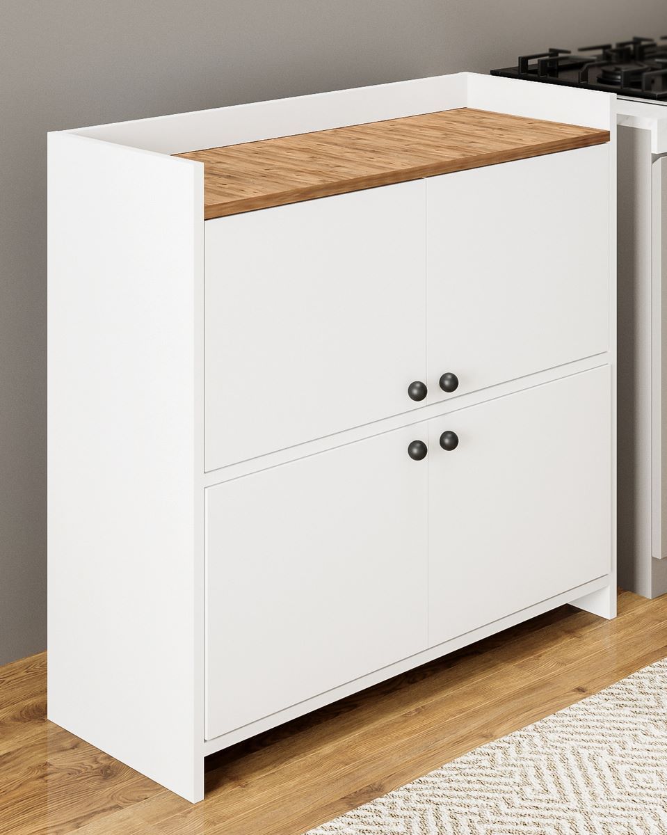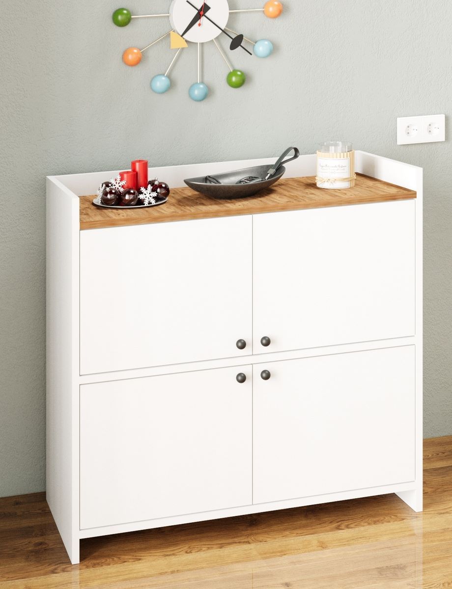 Praktická víceúčelová skříňka se 4 dveřmi a 4 policemi bílá/borovice.